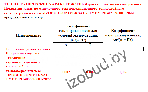 «IZOBUD «UNIVERSAL» рекомендуется: